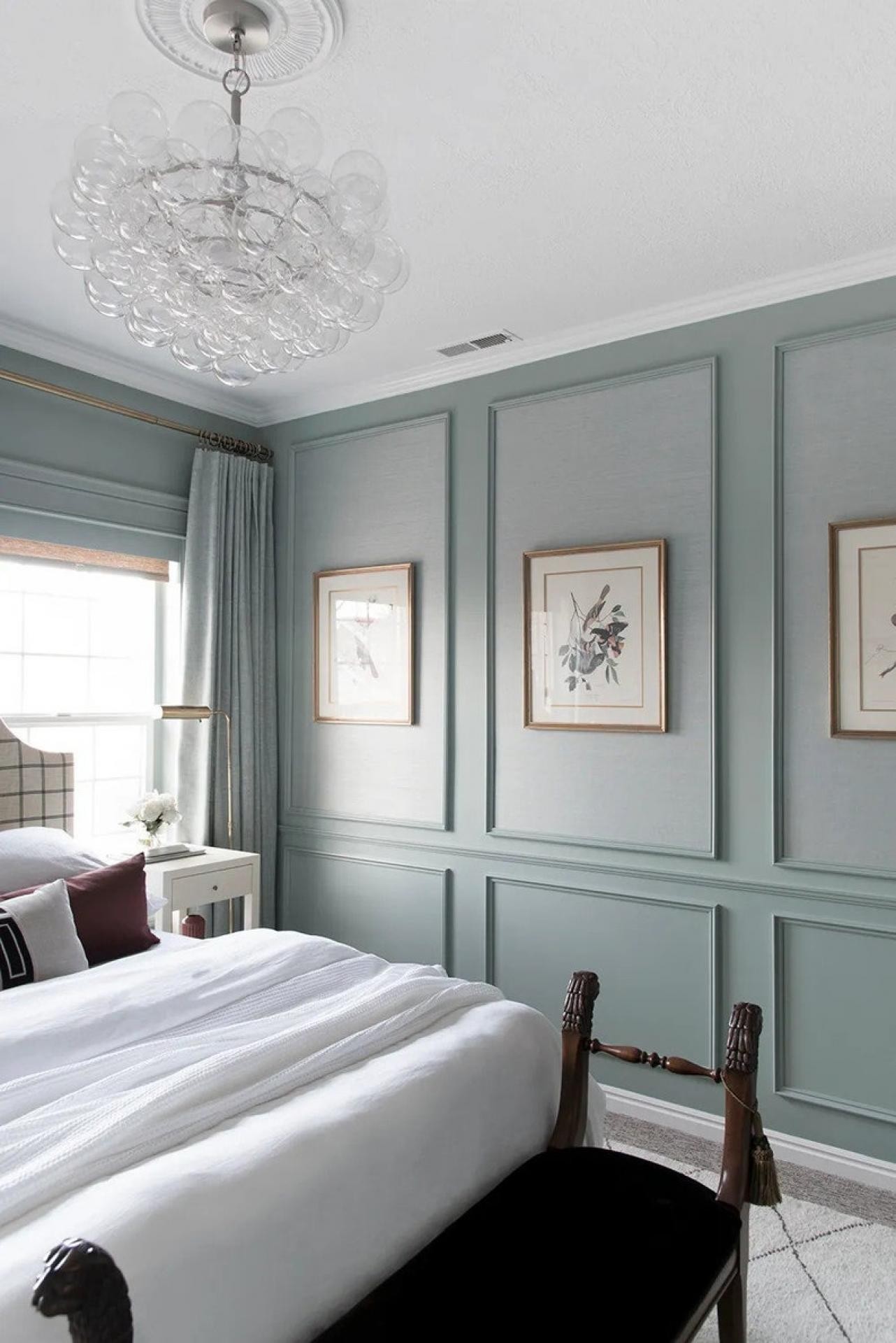Polyurethane Wall Details in a Modern Classic BedroomPolyurethane wall panels are a defining element in this modern classic bedroom concept. The vertical and horizontal framing creates structured geometry that recalls traditional design, while blending seamlessly with contemporary minimalism. This timeless characteristic balances both tradition and modernity.The choice of muted green color tones brings a calm and serene atmosphere. The botanical artwork, featuring delicate feather and leaf motifs, reinforces the natural theme and harmonizes beautifully with the wall treatment. The wall-mounted pieces not only act as decoration but also complement the architectural rhythm of the paneling.The bedding features layered cotton fabrics in sage and emerald, which add both comfort and contrast. Accents like pillows and throws introduce darker notes, enhancing depth. These design choices contribute to a strong sense of relaxation while retaining a polished, elegant environment.Stylistic Accents and CompositionFurniture arrangements follow classical symmetry: side tables flank the bed, matched with balanced lighting including a sculptural pendant lamp and a soft ceramic table lamp. Accessories such as indoor greenery complete the look while introducing texture and subtle variety into the interior.Historically, wall paneling has been associated with refined interiors, echoing aristocratic aesthetics of European houses. In this setting, polyurethane offers a modern alternative to traditional wood, with more flexibility and durability, making it ideal for contemporary homes reinventing classical grandeur.Symmetry in spatial layout creates harmony.Botanical motifs provide organic balance.Polyurethane panels ensure durability and refined detailing.This modern classic bedroom merges luxury with simplicity, resulting in a calm, elegant, and timeless living environment. This bedroom design combines polyurethane wall paneling with a soothing green palette. Botanical framed art adds depth. Symmetry balances modern and classic forms. Soft bedding provides both comfort and elegance. A sculptural pendant enhances vertical lines. The ceramic table lamp adds balance. Indoor plants soften the structure. The panels create timeless geometric rhythm. Minimalist artwork highlights natural textures. Feather and leaf motifs support organic flow. Polyurethane ensures a refined finish. Historical references enrich the style. Green hues calm the senses. Layered textiles add sophistication. Overall, it merges comfort with classic harmony.