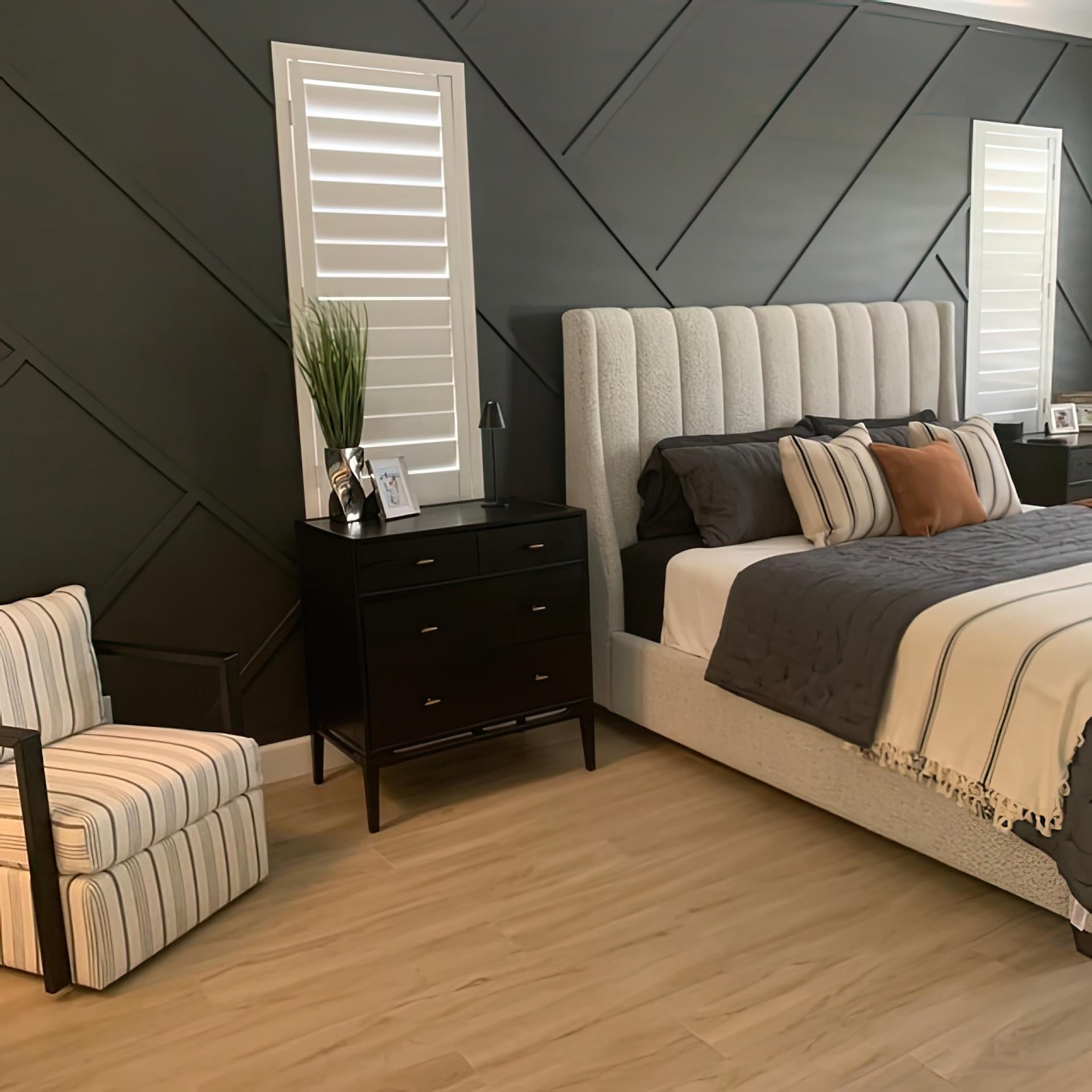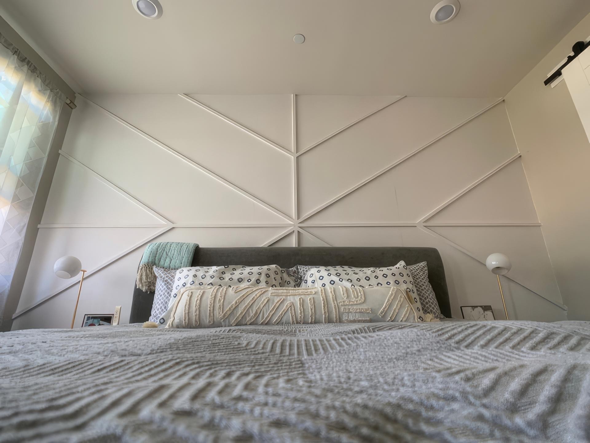 Modern Classic Bedroom with Polyurethane Molding and Geometric Wall Design
