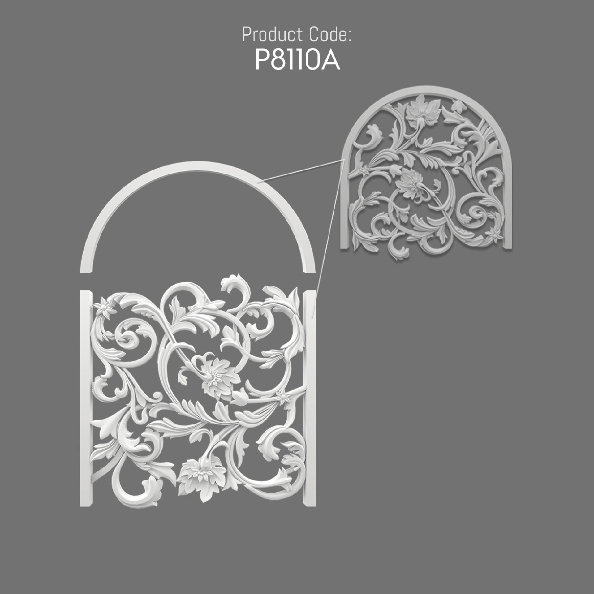 The P8110A polyurethane cutout panel is designed with ornate floral reliefs that bring sophistication to any space. Its arch frame adds balance and draws attention in both modern and classical interiors. The soft white finish emphasizes every curve of the sculptural motifs. Crafted for durability, this piece also provides lightweight practicality. Floral ornaments have long symbolized beauty and growth in design traditions. The swirling lines and petals create a sense of movement and vitality. This panel transforms plain walls into eye-catching architectural features. Its versatility allows use in living rooms, hallways, or commercial spaces. The fine details ensure that it captures light beautifully. The ornamental character links classical elegance with contemporary function. Designers value its ability to add depth without overwhelming a setting. Each curve of the pattern contributes to an overall sense of flow. The piece embodies the idea of renewal found in natural motifs. Its elegance complements both minimalist and rich interiors. Ultimately, this panel is more than decor; it is a narrative element in modern design.