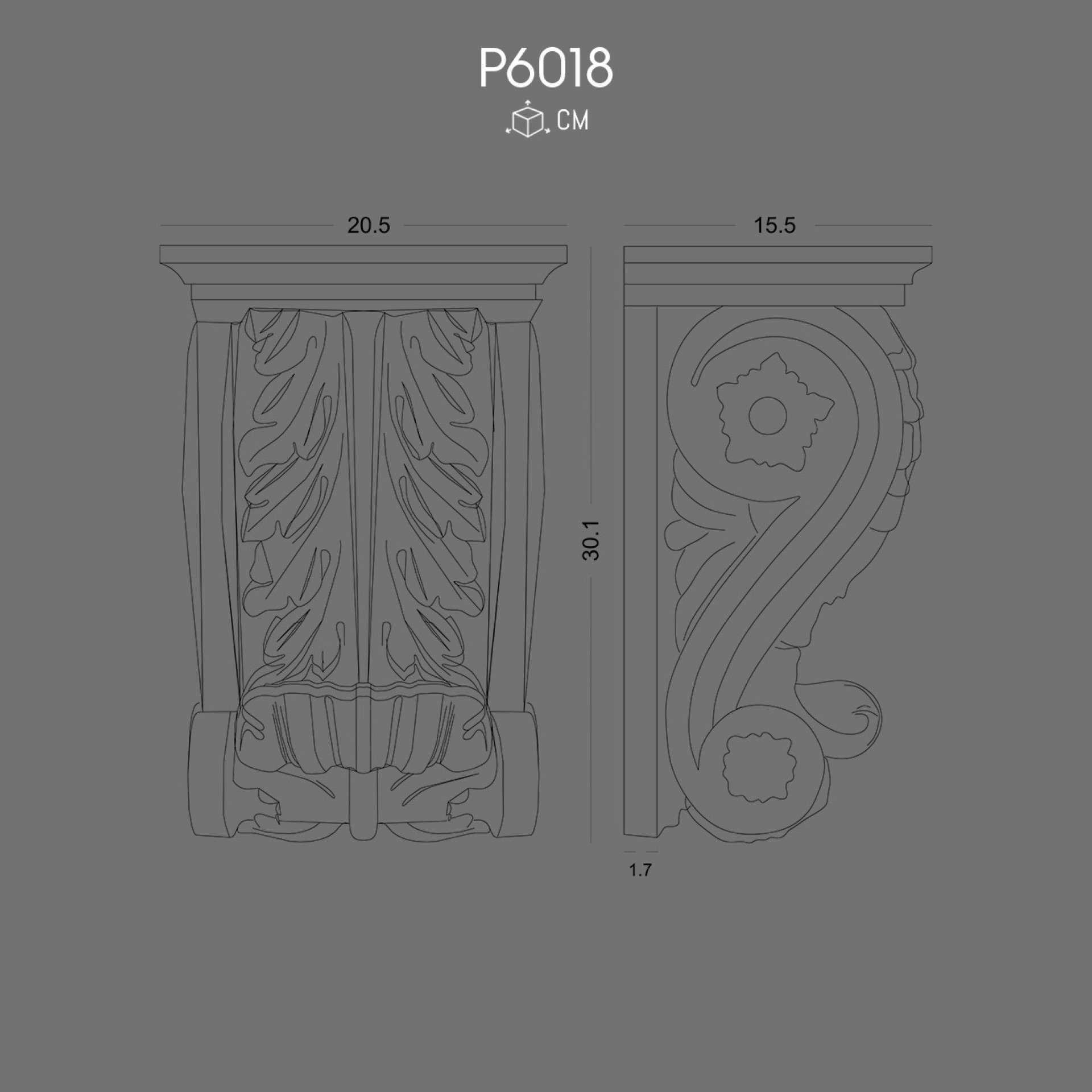 In classical architecture, brackets and corbels were integral both structurally and decoratively, often found in Renaissance and Baroque buildings. A small anecdote recalls that stone masons carved corbels not only to bear weight but also to express artistry through detailed leaves and scrolls. The P6018 adapts this heritage into a modern, lightweight polyurethane form that is durable and easy to apply.