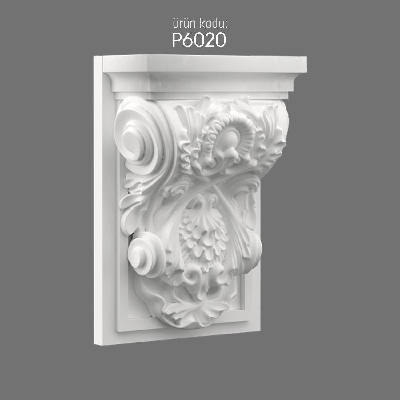The Polyurethane P6020 Bracket is a decorative element crafted with refined design and ornamental precision. Its detailed carvings include motif patterns, scrolling lines, and floral forms that enhance wall aesthetics.