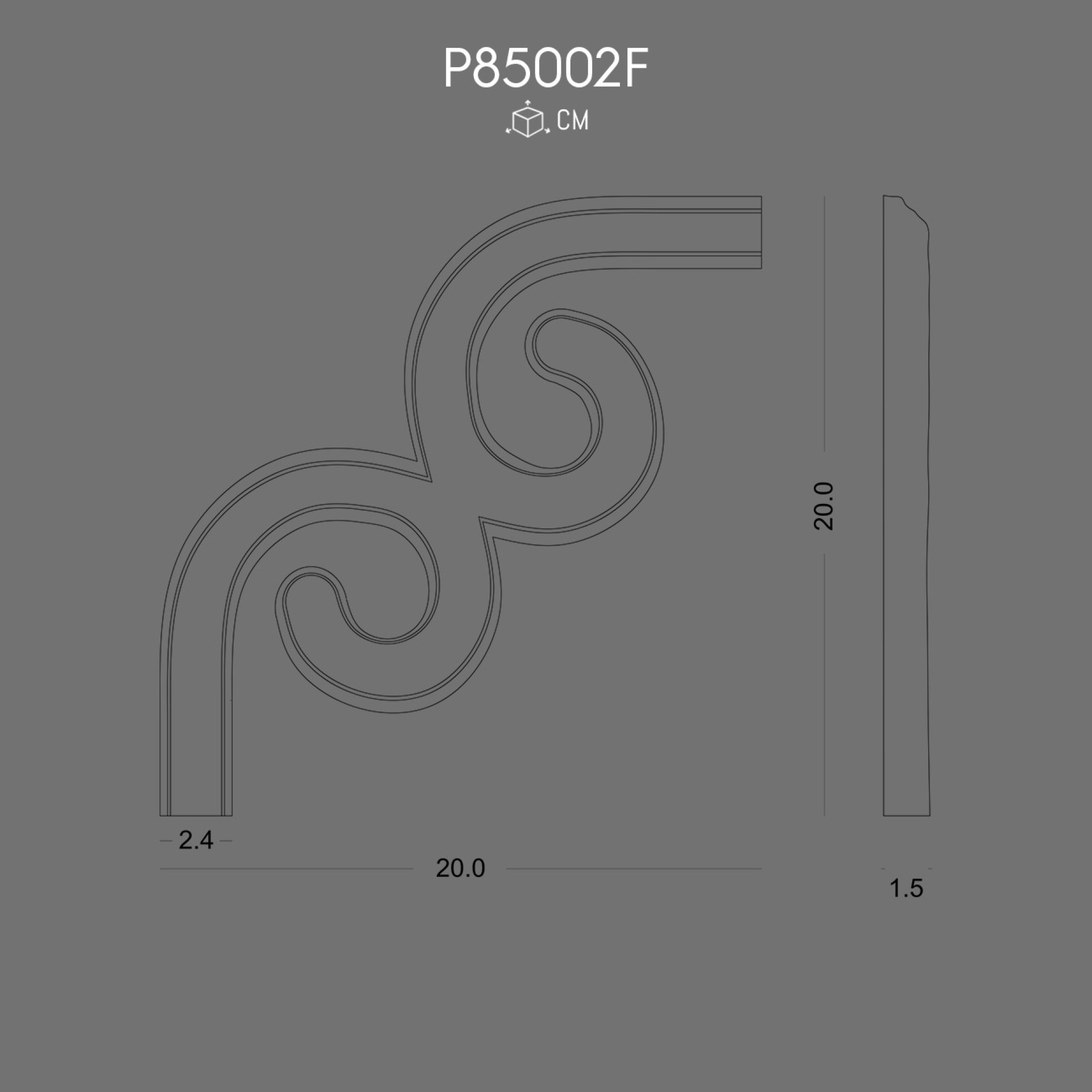 By combining the P85002F corner element with the P85002 profile, you can achieve a refined finish that merges functionality with visual appeal. The result is a durable, elegant solution ideal for detailed decorative work.