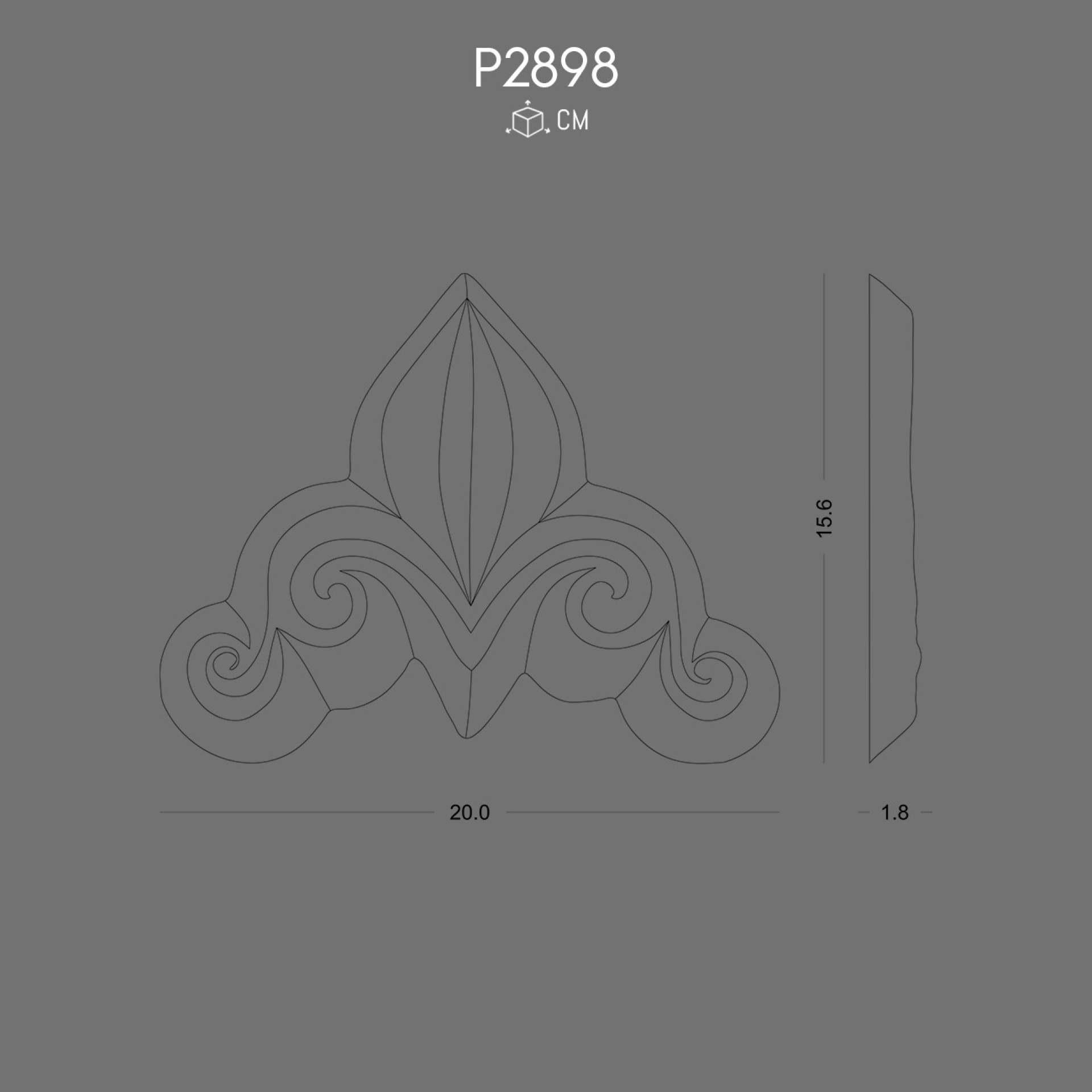 The P2898 Decoration is designed from high-quality polyurethane, with a crisp leaf-shaped center and flowing spiral curves on each side. Its symmetrical form creates an elegant transition between surfaces while adding texture and depth.