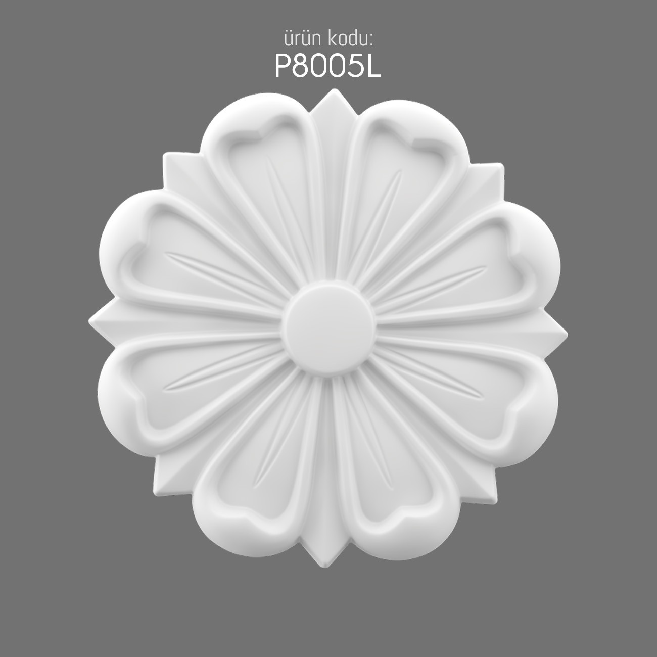 The Polyurethane Decoration P8005L offers a floral medallion design with a timeless look. Its petal-like geometry radiates harmony and adds refined detail to interiors. The use of polyurethane ensures both lightness and long durability. Heart-shaped contours enrich the decorative effect and create visual softness. Subtle depth is achieved through relief details that catch light in elegant ways. This decorative element is easy to install and suitable for versatile applications. It complements both modern and classical styles with equal grace. The heritage of rosettes in ancient architecture inspires its balanced look. The P8005L adapts that tradition into a practical solution. Its lightweight material makes it especially convenient for ceilings and walls. Designers value its ability to merge aesthetic detail with durability. The motif creates rhythm and structure on plain surfaces. Symmetry brings calmness and order to interior composition. The overall appearance is both elegant and discreet. Choosing this design means enriching spaces with a timeless decoration.