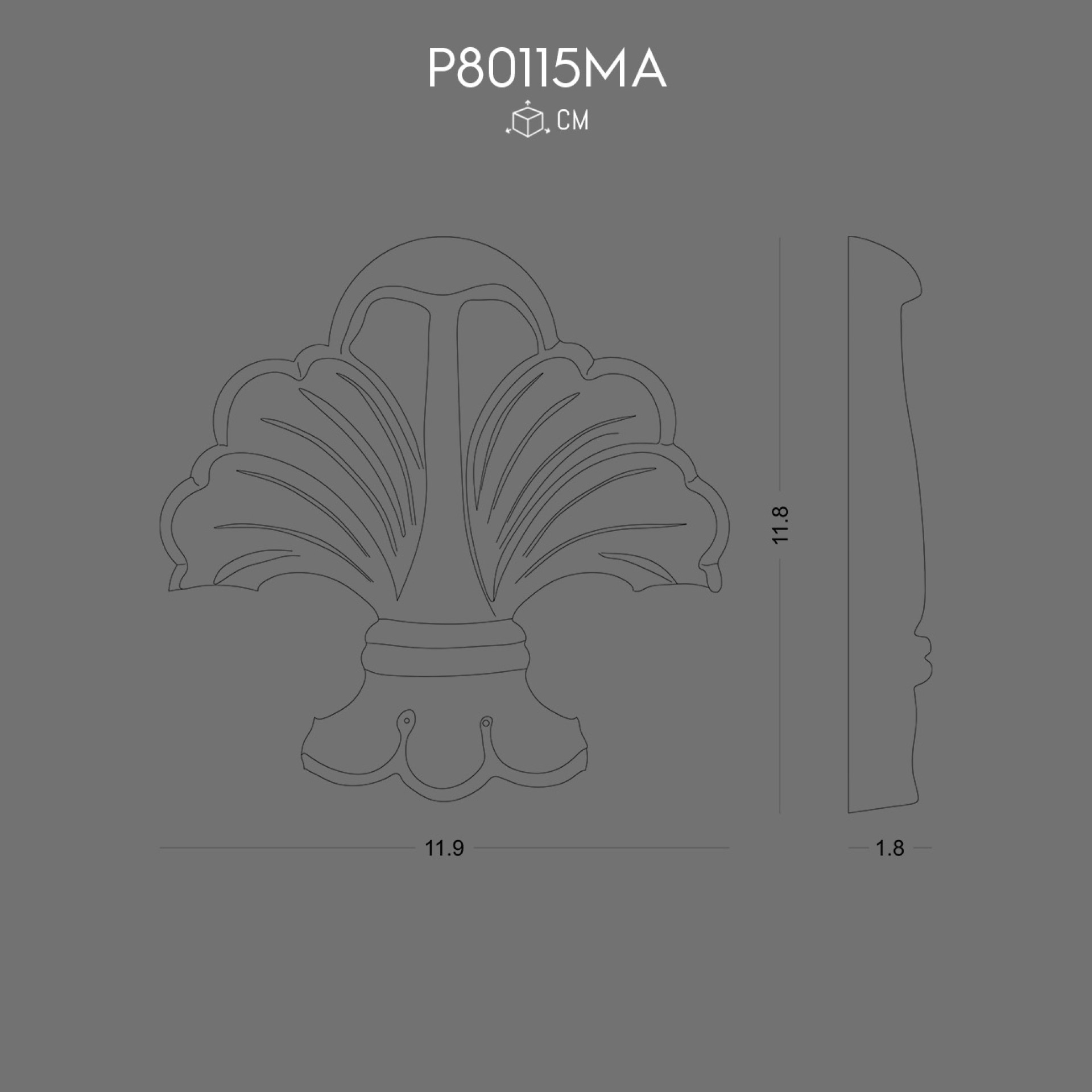 The P80115MA polyurethane ornament is a lightweight decorative element that brings elegance and detail into any interior. Its shell-like structure recalls motifs that have inspired classical architecture for centuries, creating a sense of heritage in a modern space. One anecdote worth noting is how shell motifs, similar to the flowing curves on this piece, were widely used in Baroque and Rococo interiors as a symbol of abundance and refinement. The smooth surface and delicate lines make it suitable for a range of decorating styles, from traditional to contemporary. Because it is made from durable polyurethane, the ornament is both lightweight and long-lasting, ensuring easy installation while maintaining quality. Whether placed on walls, ceilings, or furniture façades, it provides a refined focal point. Its symmetrical form and sweeping curves offer a balanced decorative effect, transforming plain surfaces into visually rich experiences. This is an ideal piece for those who appreciate design that combines practical versatility with decorative sophistication.