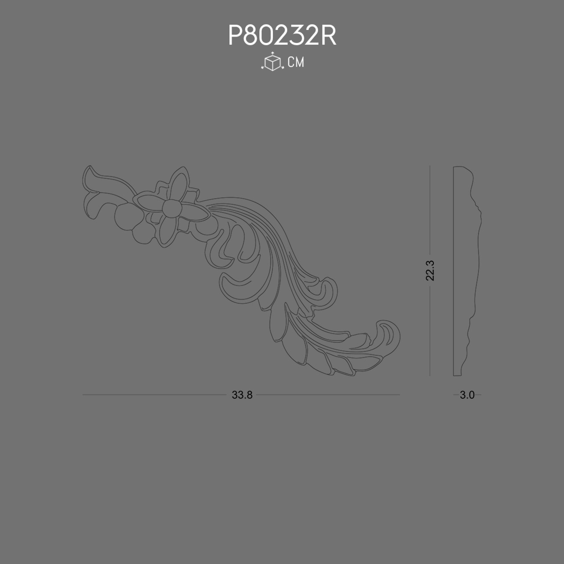 The P80232R Decoration brings a refined touch of elegance with its floral curves and flowing leaf details. This piece is crafted to enrich walls, ceilings, or furniture with timeless aesthetic values. The design showcases ornamental flourishes reminiscent of classical European interiors, where decorative elements symbolized harmony and refinement. A short historical note says that in Ancient Greece and Rome, such scroll-like motifs were used not merely for beauty but also to communicate a sense of order and continuity in architecture. With similar inspiration, this decoration blends tradition with modern spaces, symbolizing both durability and artistry. Its smooth polyurethane surface reflects light delicately, enhancing the perception of depth in any composition. This decoration is versatile; it can highlight corners, frames, or accent panels in both contemporary and traditional spaces. A personal anecdote recalls how an interior designer once used similar floral decorations to transform a plain wooden cabinet into the centerpiece of a living room, proving the power of such elements to reshape an atmosphere. The P80232R Decoration continues that legacy of transformation, elevating everyday interiors into spaces of unique character and personal expression.