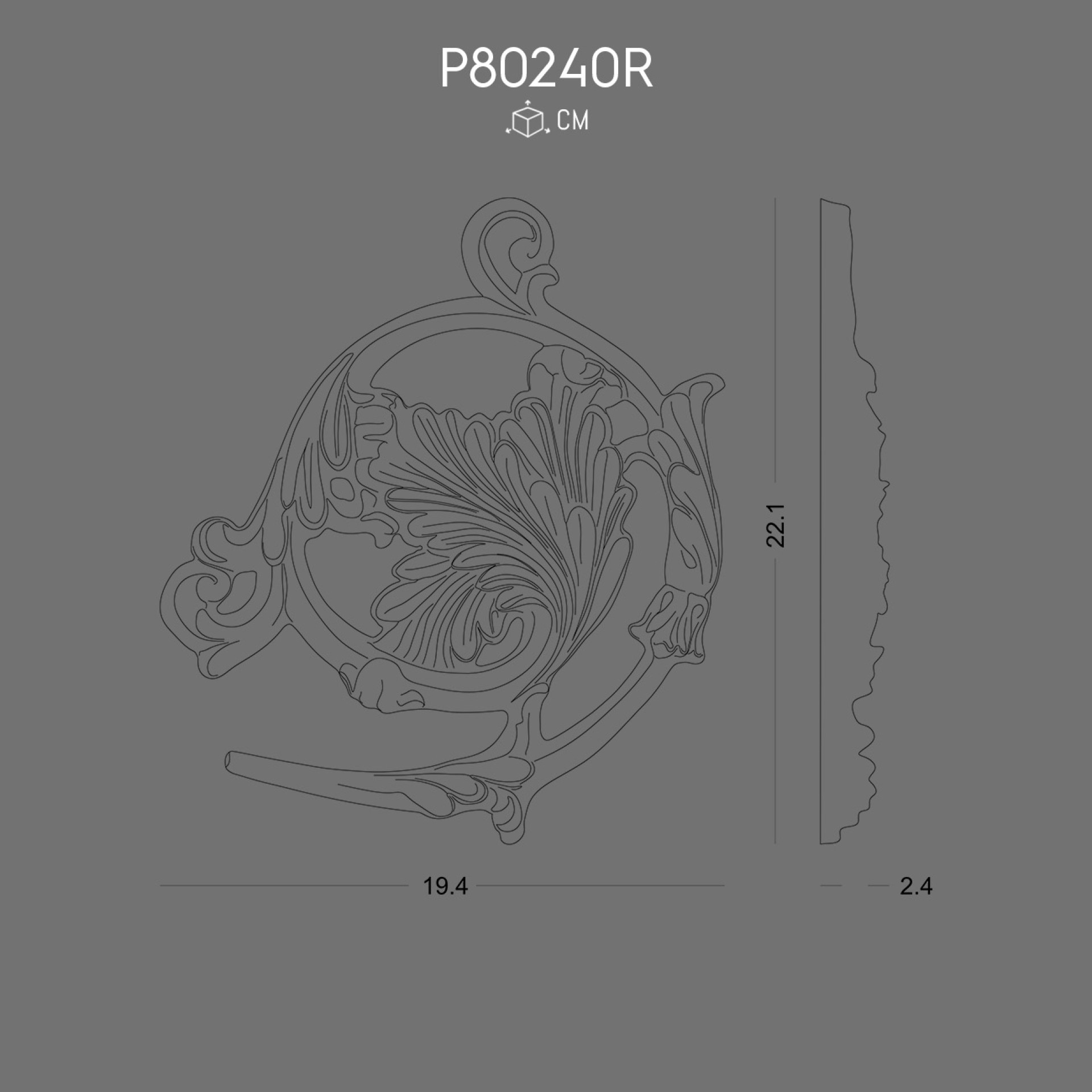 The P80240R decoration is designed to transform plain walls into elegant surfaces with ornate detail. It features layered leaf-inspired patterns with smooth curves, giving a sophisticated touch to interiors. Made from polyurethane, the piece combines durability with lightweight practicality.