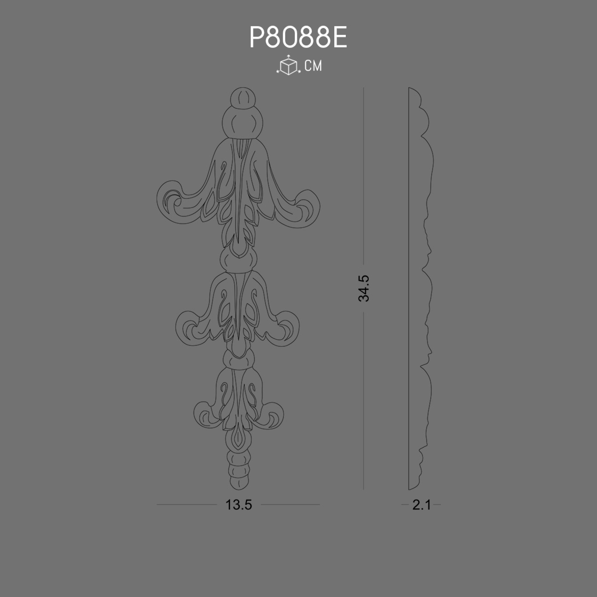 The P8088E Polyurethane Decoration is a refined wall element that combines classical beauty with modern material benefits. Its symmetrical leaf-like ornaments flow downward into elegant scrolls, producing a rhythm that adds depth and luxury to wall surfaces.