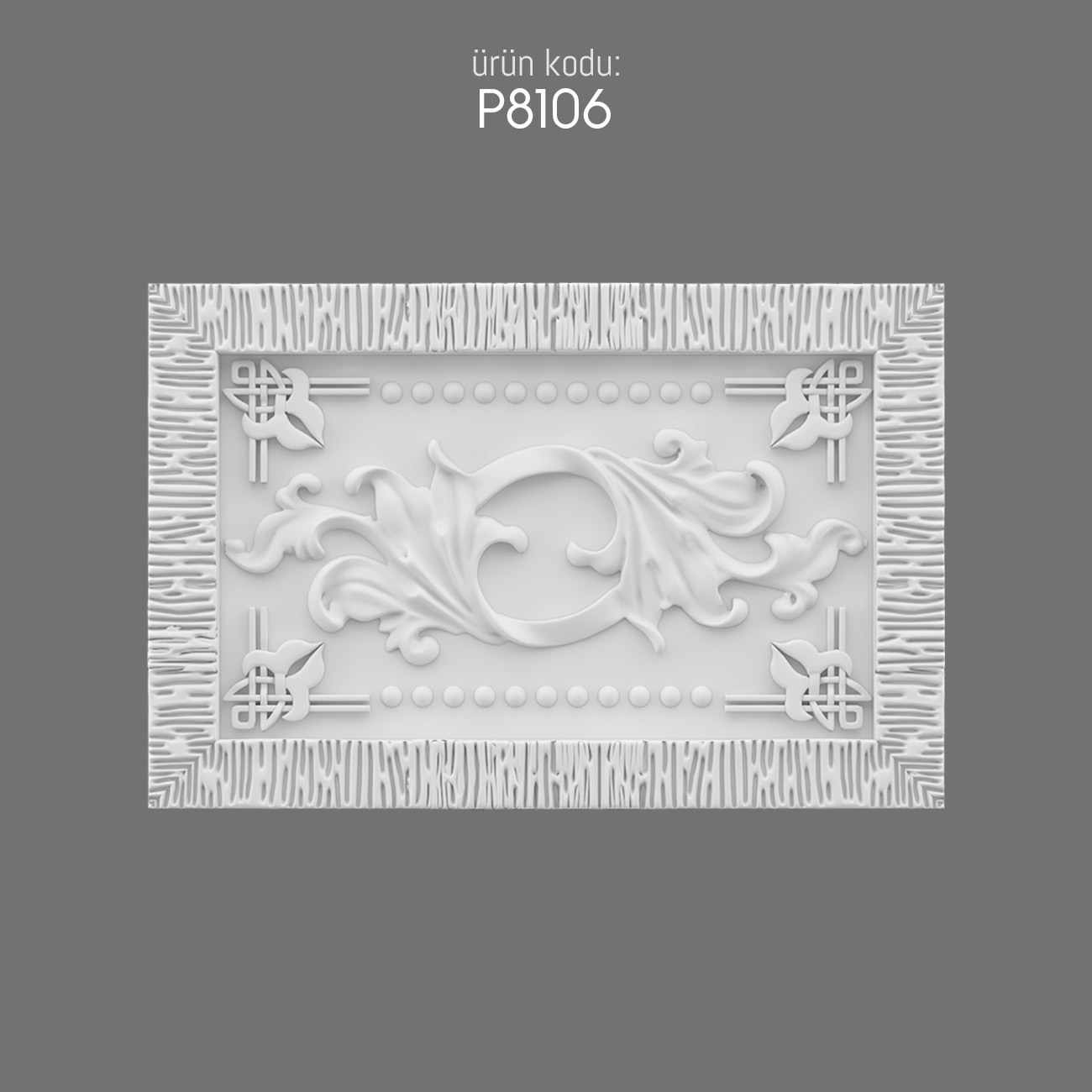 The polyurethane decoration P8106 is designed with detailed floral and geometric motifs that create a refined aesthetic for any interior. Its durability ensures long-term use, while its light material makes it practical during installation.