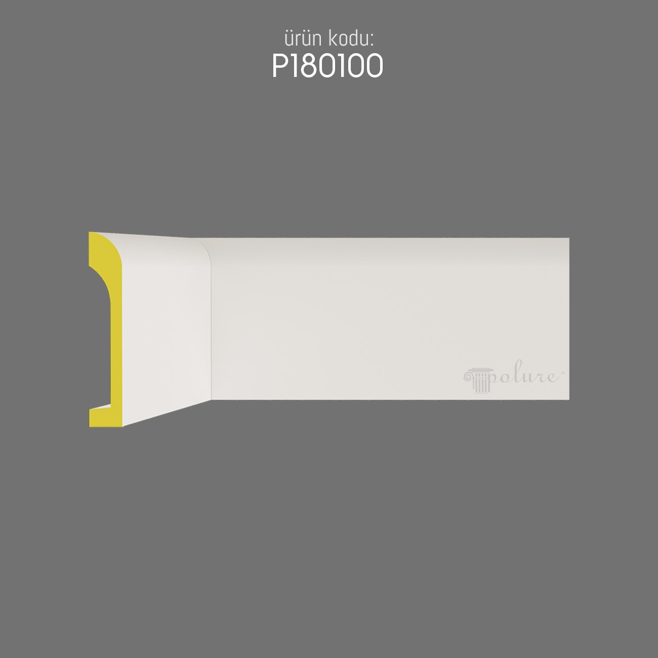 The P180100 skirting board is crafted with a timeless profile that combines simplicity and elegance. Its classic decorative design allows it to fit seamlessly into various interior concepts, from modern to traditional spaces. Inspired by the ancient architectural approach of enhancing wall edges, this piece offers both functional protection and visual enrichment.