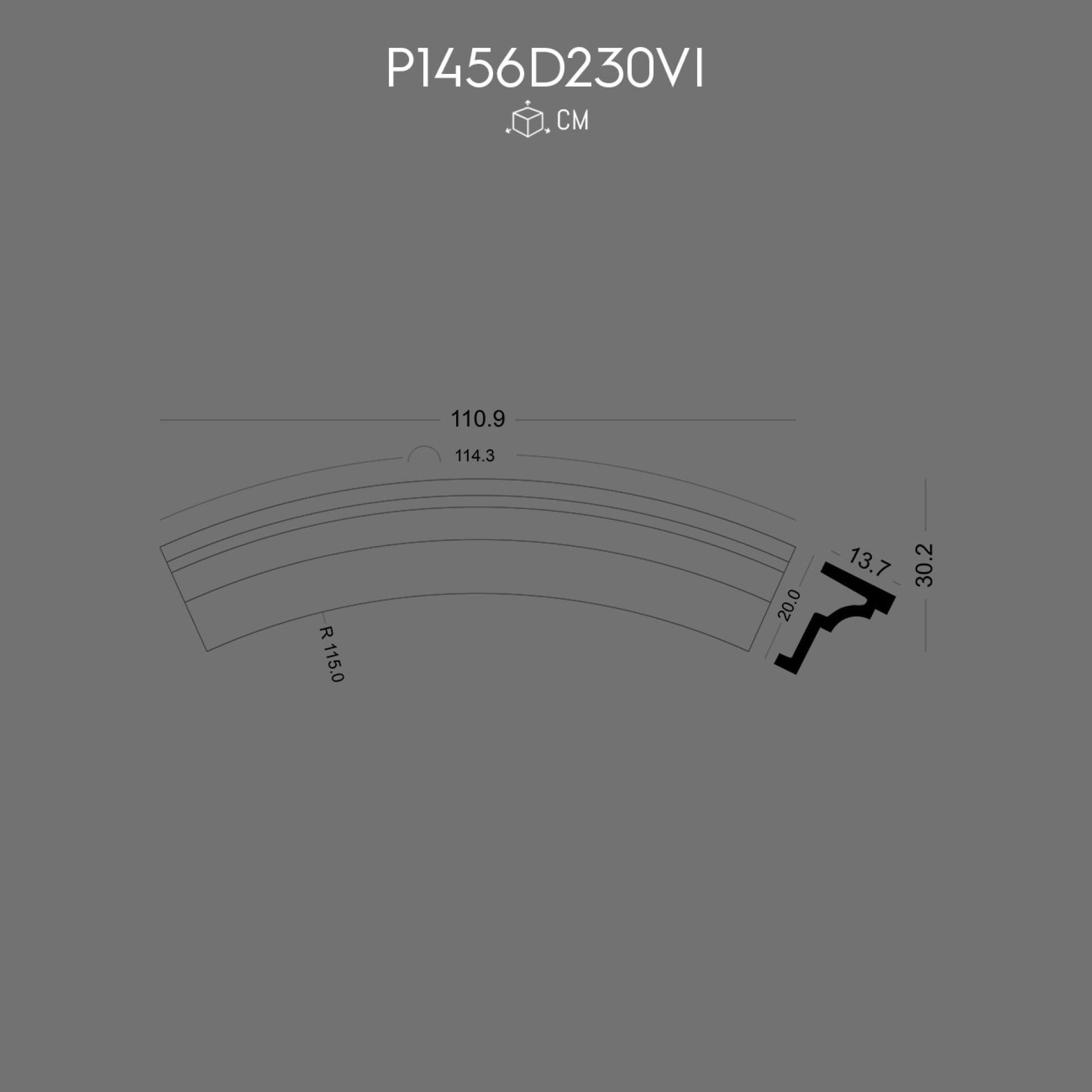 The P1456D230VI is an excellent solution for projects that require details such as polyurethane decoration, door crown, window arch detail, architectural ornament, and interior design element. It contributes to an appealing finish and adds a professional touch to architectural applications.