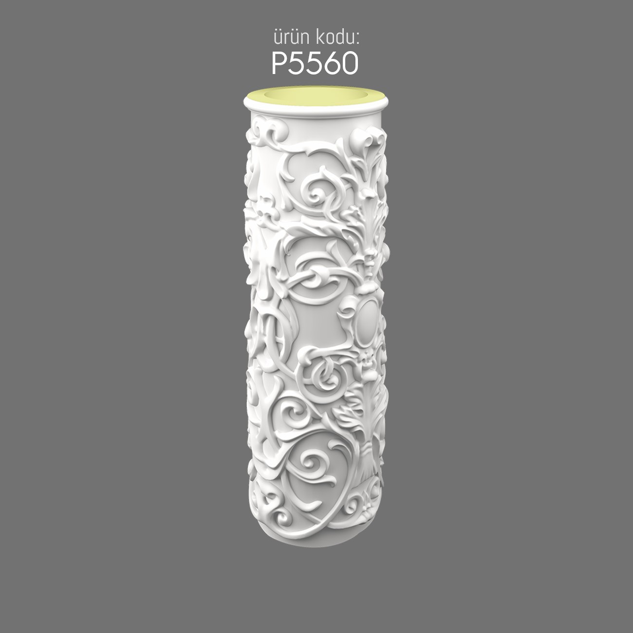 The 60 cm diameter polyurethane column base model is specifically designed to harmonize with the patterned polyurethane column foot model. With its durable material and elegant details, it ensures long-lasting use while creating an aesthetic foundation element in architectural spaces.