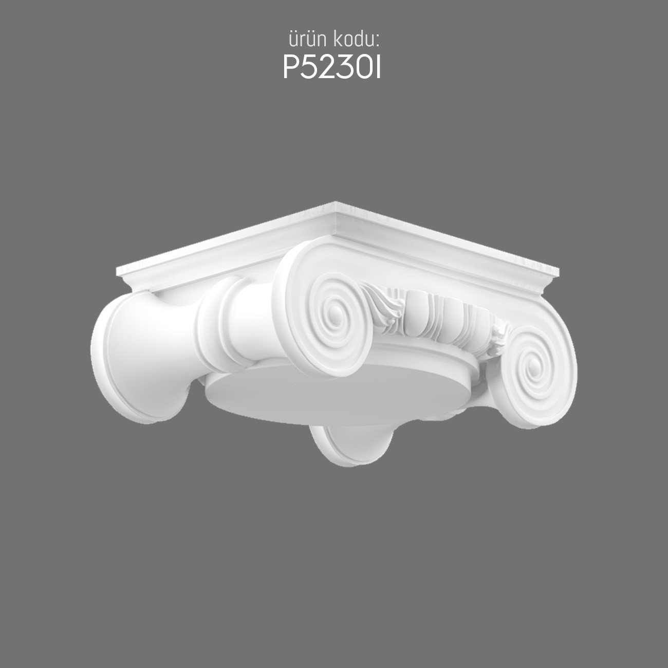 polyurethane column capital, ionic column capital, decorative capital, p5230i column capital, classical design element, architectural detail, polyurethane molding, column top decoration, ionic volute design, elegant interior capital, architectural ornament, lightweight capital, traditional column detail, polyurethane classical design, ornamental capital