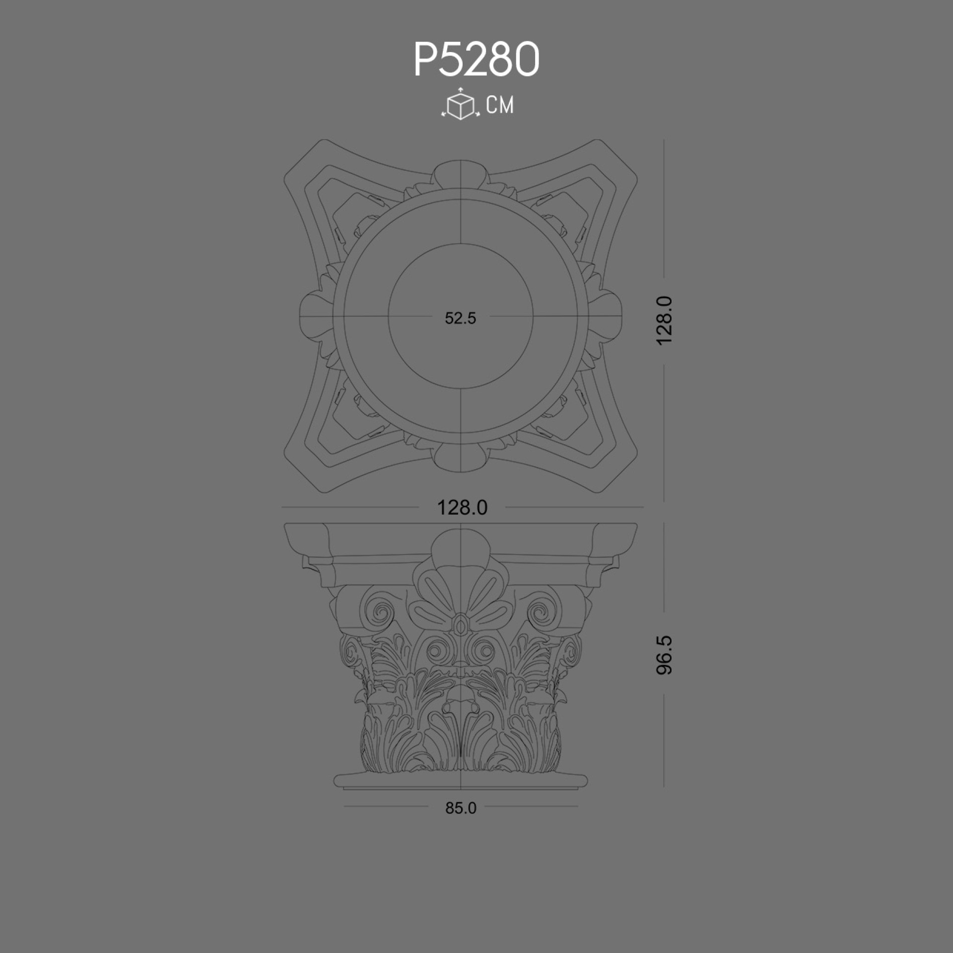 A short anecdote from antiquity reminds us that the capital was seen as the crown of the column, symbolizing beauty and strength. The P5280 follows this tradition by combining rich embellishment with durability. It features fine details inspired by the Corinthian style, where acanthus leaves create dynamic layers and dramatic shadows.