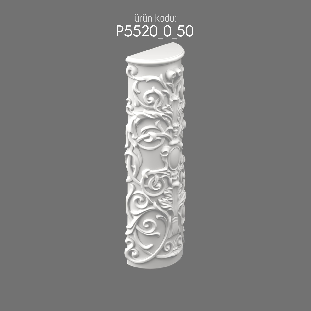 The Decorative Column Base P5520_0_50 provides a graceful solution for refined interiors. Its ornamental design combines swirling reliefs with a sense of timeless charm. Crafted in durable polyurethane, it balances strength with delicate detailing. The patterns recall the flowing forms of classical Ionic architecture. Each curve creates shadows that enhance depth and movement. Designers value its ability to enrich both modern and traditional spaces. The decorative column base serves not only as a support element but also as an artistic accent. Its fluid motifs mirror the artistry of ancient craftsmen. Historic anecdotes suggest vines often inspired sculptors in Ionic design. This piece echoes that spirit while embracing contemporary usability. Perfect for luxurious halls, living rooms, and entrances. It adds rhythm and texture to the environment. Its half-round form makes it versatile in corner applications. Strong yet elegant, it highlights architectural presence. Above all, it represents a fusion of art and structure in decorative expression.
