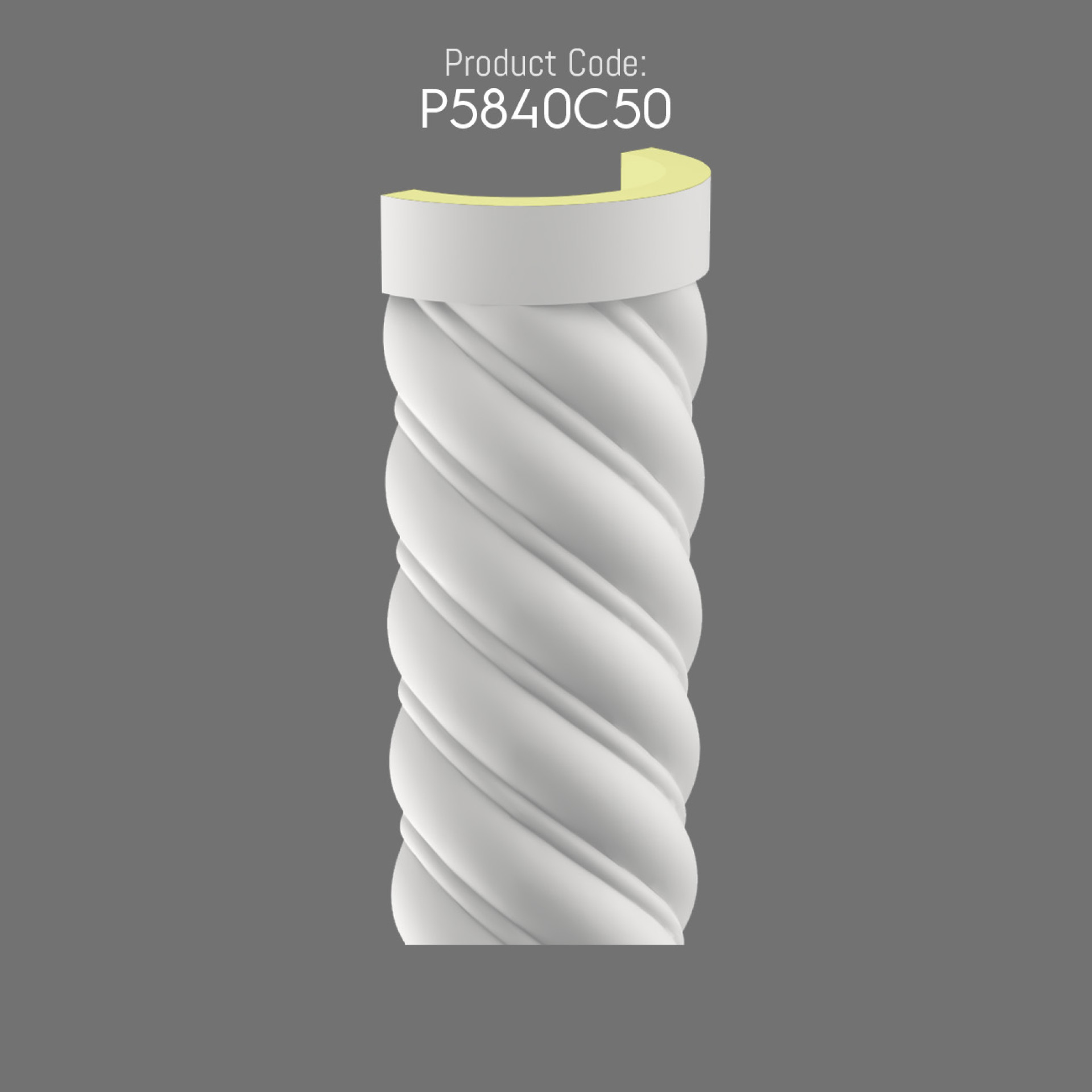 The Twisted Column design of the P5840C50 brings a remarkable sense of motion and elegance into decorative architecture. Its polyurethane structure offers lightweight construction and durability while maintaining a refined appearance.