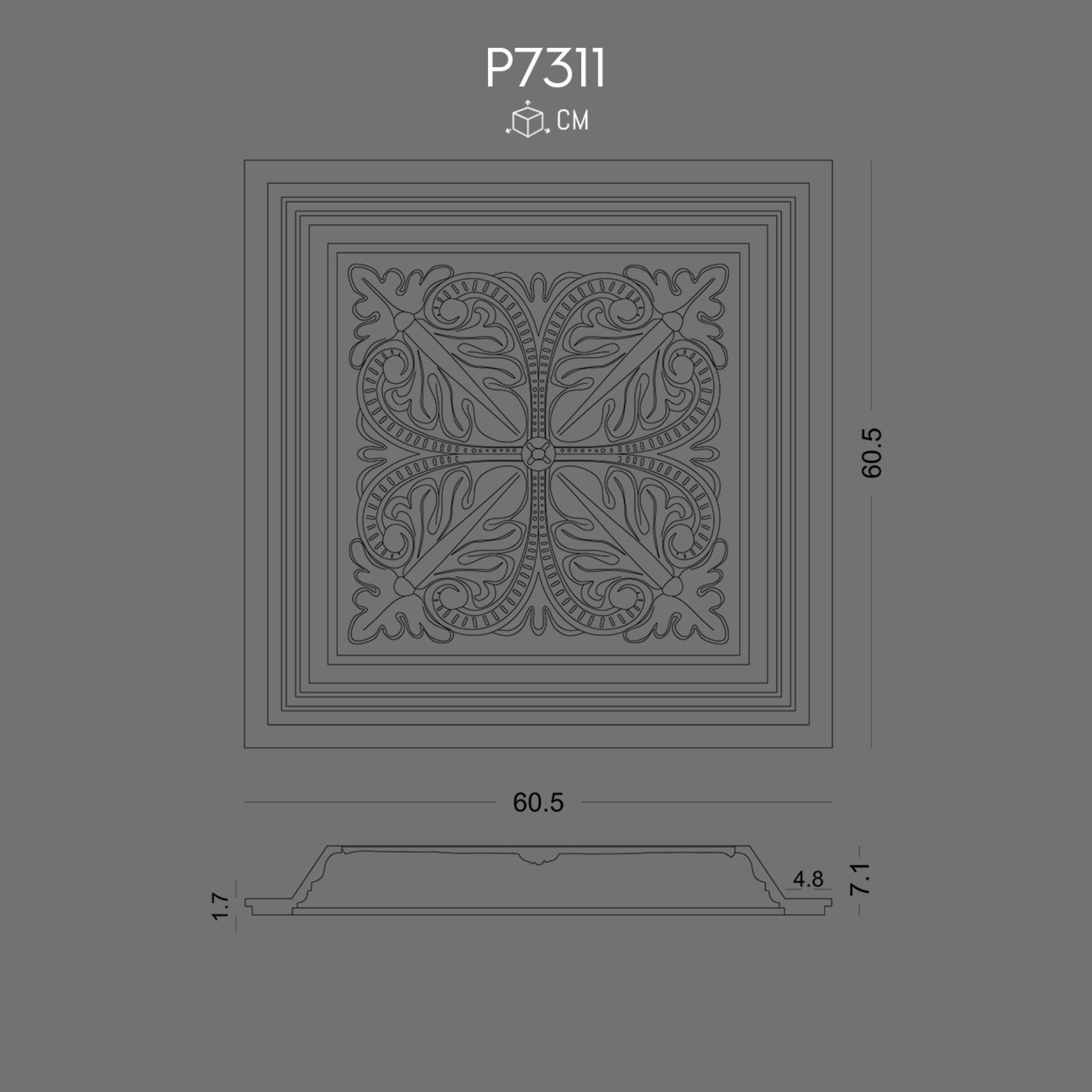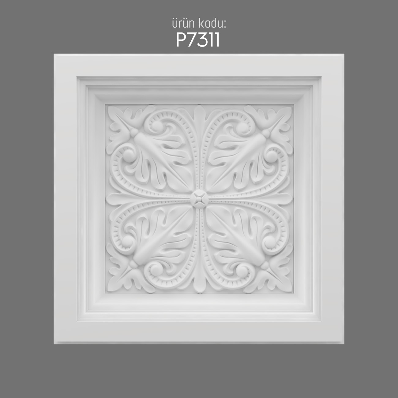 The P7311 polyurethane dome brings a refined decorative atmosphere to interiors with its elegant leaf-inspired reliefs arranged in a symmetrical four-part motif. Domes have historically symbolized grandeur and harmony in architecture, and this design pays homage to that tradition with a modern material. The raised patterns add dimension and catch subtle shadows that change throughout the day, enhancing ceiling and wall compositions with soft depth. Its rectangular framing ensures versatility whether installed on ceilings, as a central feature, or combined in sequence for larger decorative panels. Unlike heavy plaster domes of the past, this lightweight polyurethane model makes installation safe and practical without losing aesthetic richness. A brief anecdote recalls Renaissance palaces, where domes with elaborate motifs became visual focal points, echoing the sense of elegance recreated here for contemporary spaces. Durable, detailed, and easy to adapt, the P7311 dome merges classical inspiration with modern decorative needs seamlessly.