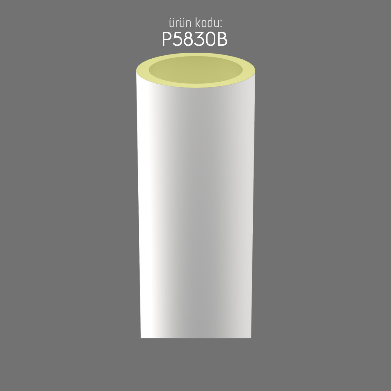 The 30 cm diameter P5830B coded plain column compatible column capital models are designed to provide architectural harmony and durability. These polyurethane capitals are precisely produced to perfectly fit with the P5830B coded plain column, ensuring both aesthetic quality and long-lasting performance.