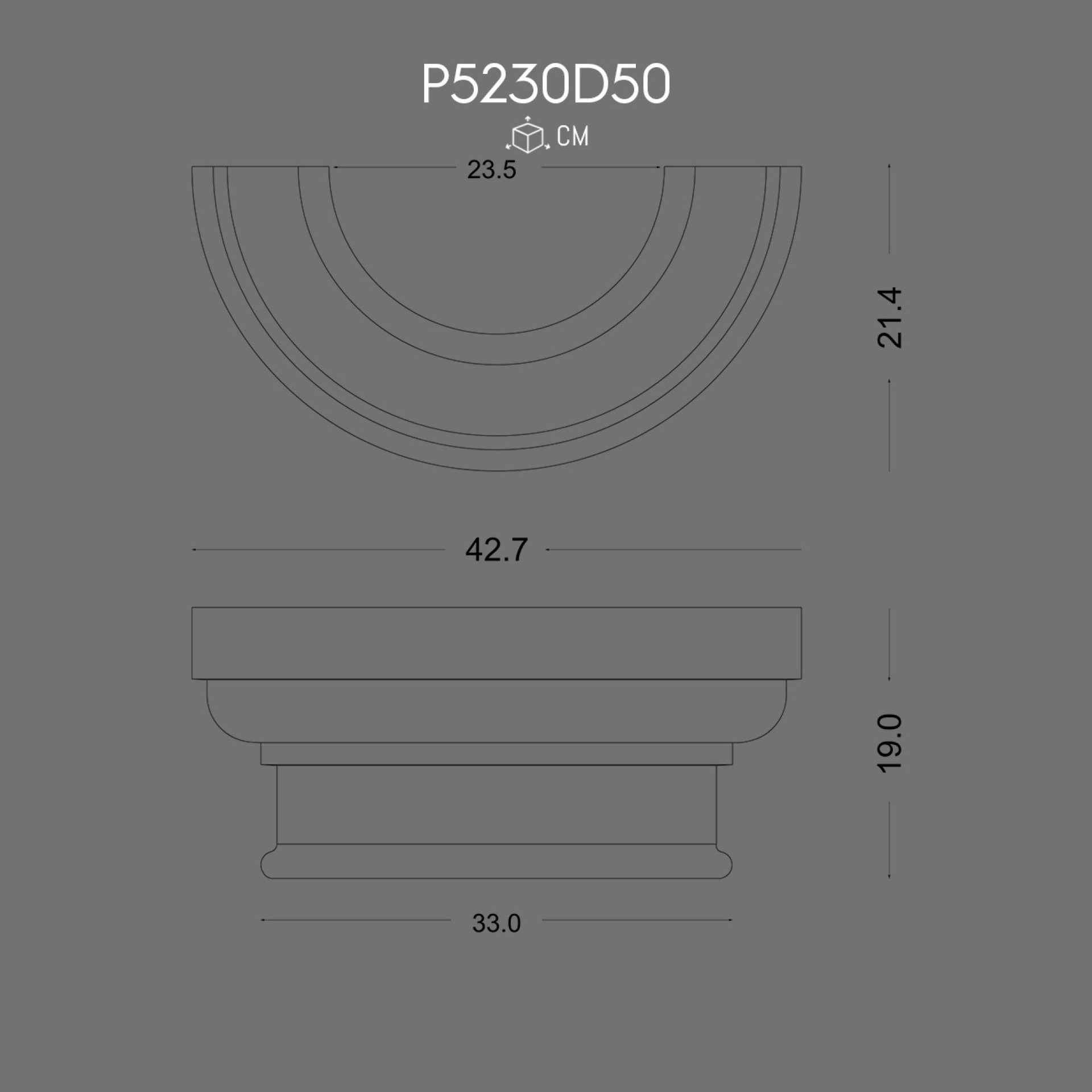 The P5230D50 Polyurethane Column Capital is a refined piece designed to bring architectural elegance into living or professional spaces. Crafted in durable polyurethane, it offers a lightweight yet strong alternative to traditional materials. A short anecdote often told by architects is that column capitals were once considered the 'crown of a building,' symbolizing both strength and grace at the same time. This piece reflects that historical symbolism through its gently curved forms that recall Doric, Ionic, and Corinthian traditions. Its pure white surface and rounded contours make it adaptable to both modern minimalist and ornate classical interiors. Polyurethane allows for easy installation and long-lasting stability, giving decorators freedom to experiment with grand designs without added weight. The P5230D50 model showcases smooth transitions and clean lines that evoke ancient temples while fitting seamlessly into contemporary projects.
