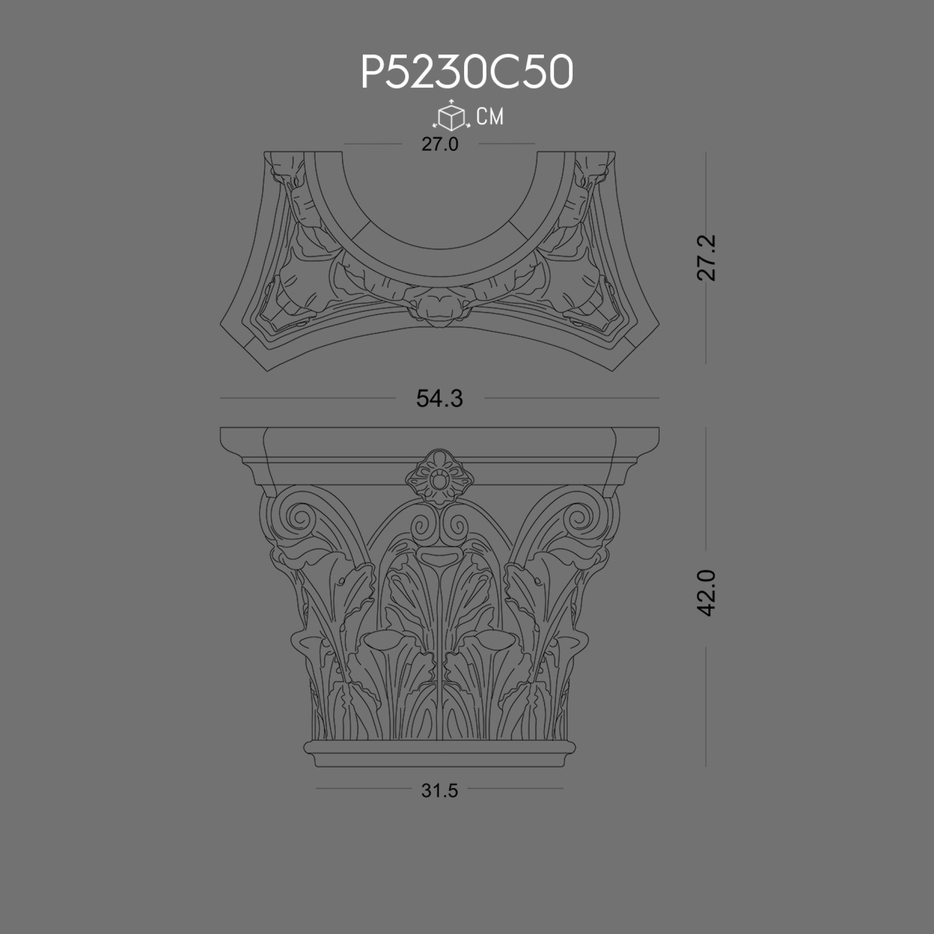 Polyurethane Column Capital P5240D50 Classical Doric Ionic Corinthian