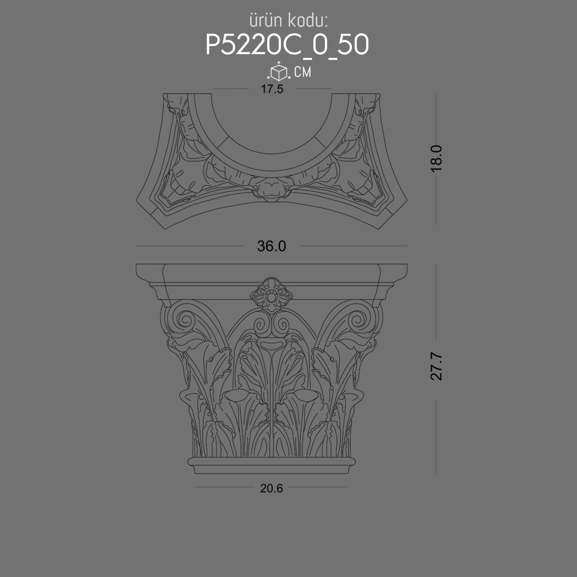 P5240C Polyurethane Column Capital Byzantine Roman Greek Iconic Design