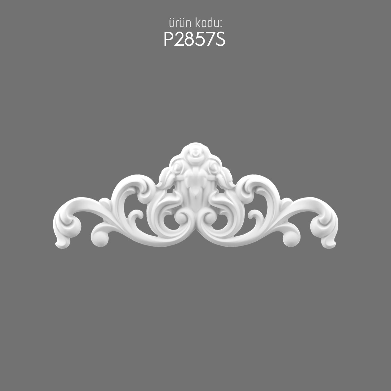 Die P2857S Krone aus Polyurethan überzeugt durch feine Ornamente, geschwungene Linien und ausdrucksstarkes Design. Ihre symmetrische Form verleiht jedem Raum ein Gefühl von Ausgewogenheit und Eleganz.