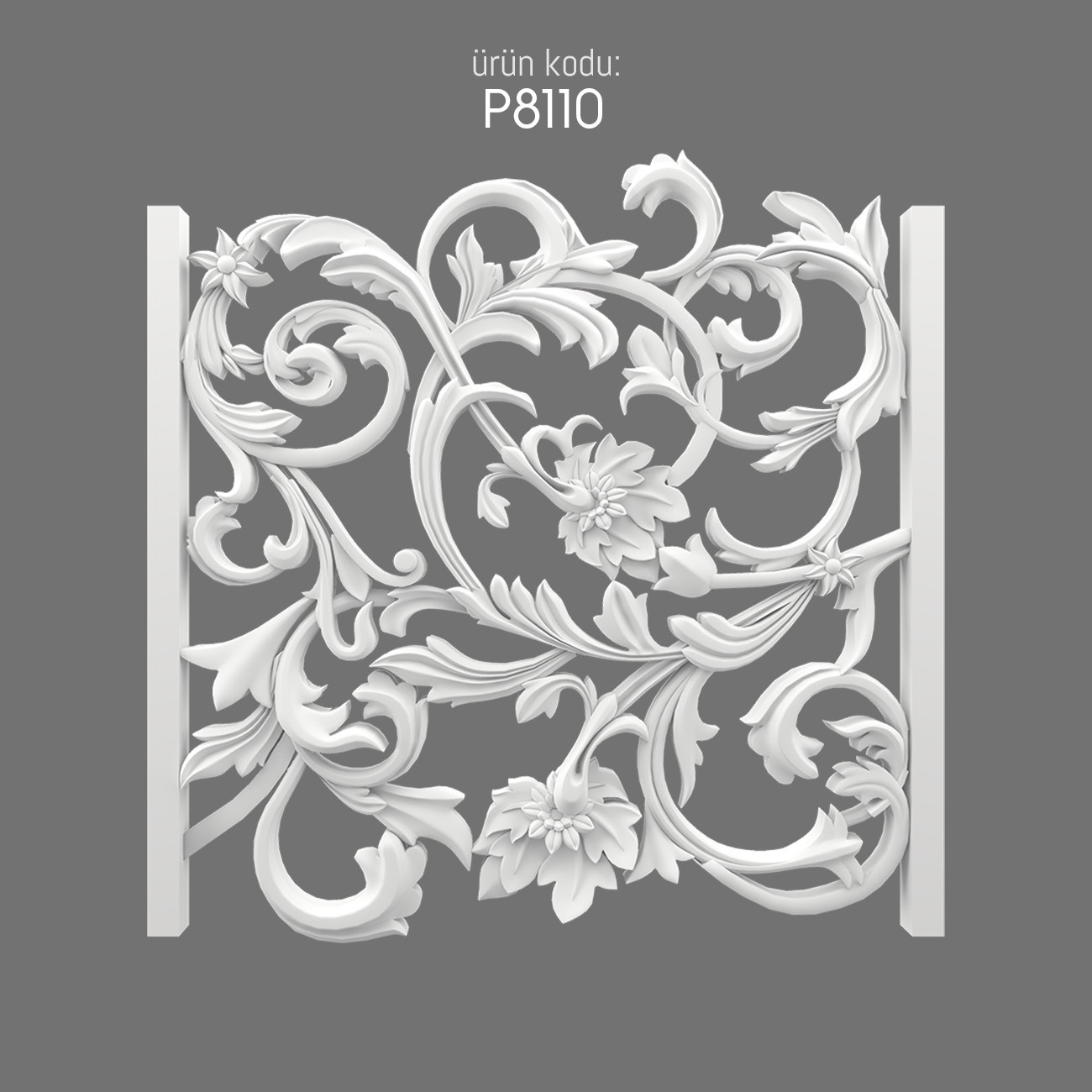 Model P8110 został zaprojektowany z myślą o eleganckiej aranżacji wnętrz. Panel ażurowy wykonany z pianki poliuretanowej cechuje się wyjątkową trwałością i subtelną formą. Motyw kwiatowy dodaje wnętrzom lekkości oraz ponadczasowej dekoracyjności.