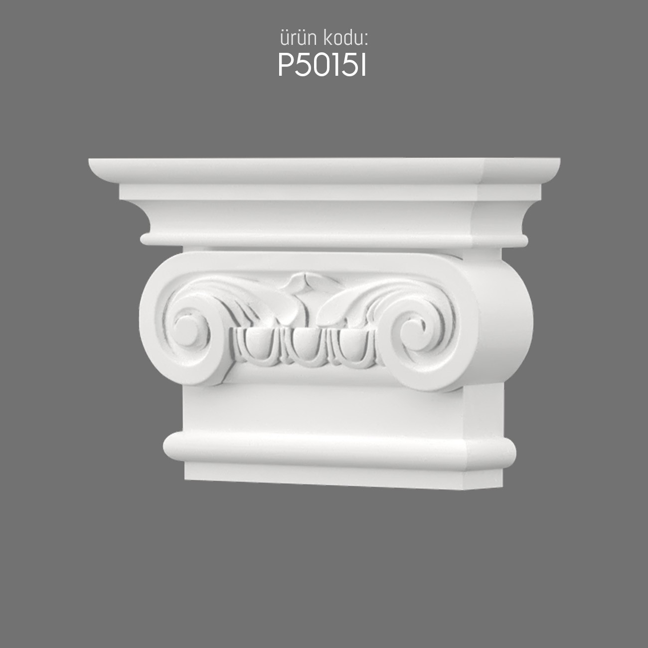 P5015I është një kapitell prej poliuretani që i jep kolonave një pamje klasike dhe të sofistikuar. Struktura vjen me spirale dhe ornamente të punuara me imtësi, duke pasqyruar frymën e njohur të kapitellit jonik.